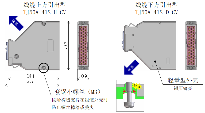 ● 塑墙围住开口部保护触点,预防异物附着端子
